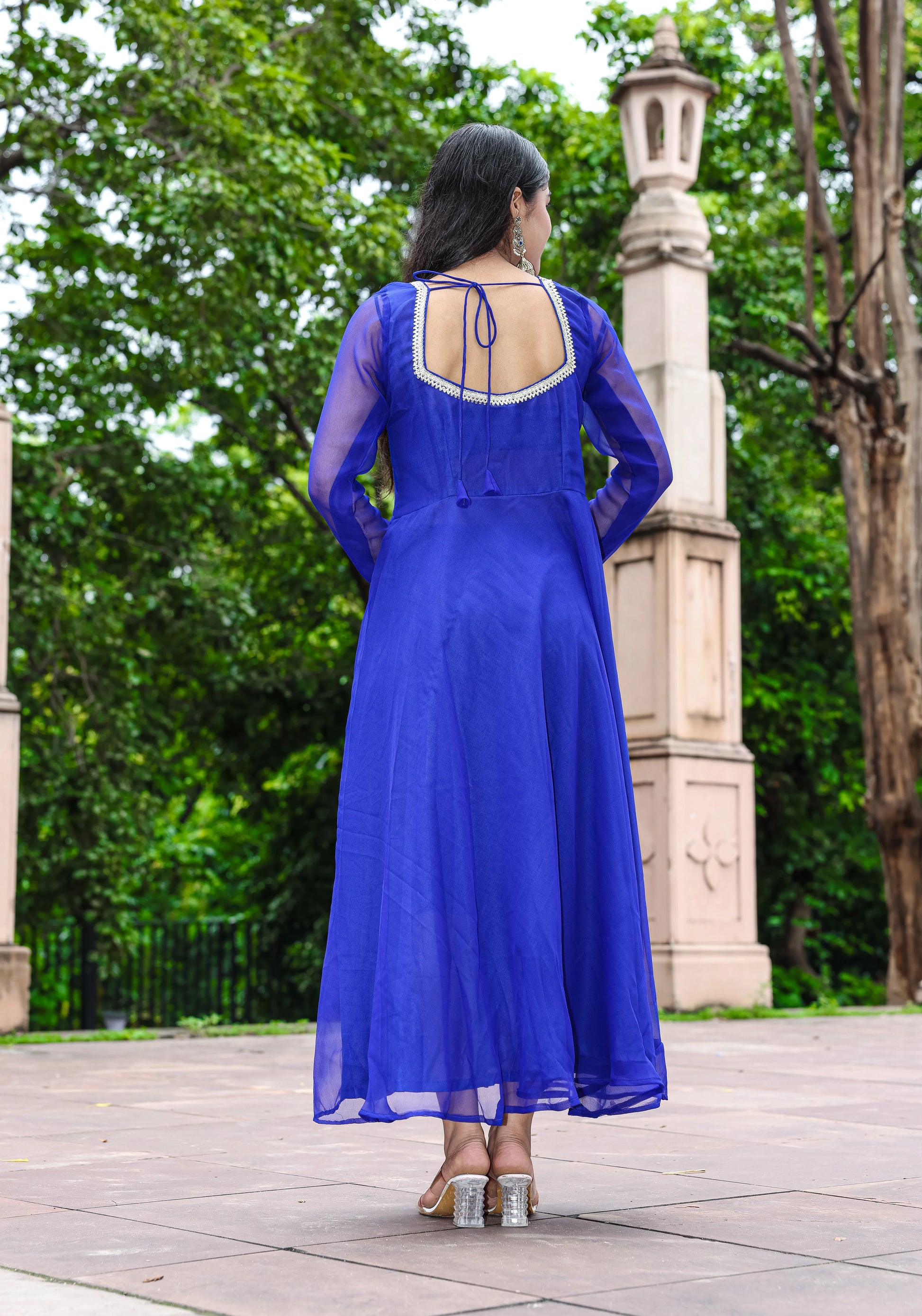 Drape yourself in timeless elegance with our Neel Kamal Elegance, a royal blue georgette Anarkali set that embodies grace and sophistication. This two-piece ensemble features a flowing long Anarkali paired with a delicate dupatta, making it perfect for festive occasions, weddings, or evening celebrations.