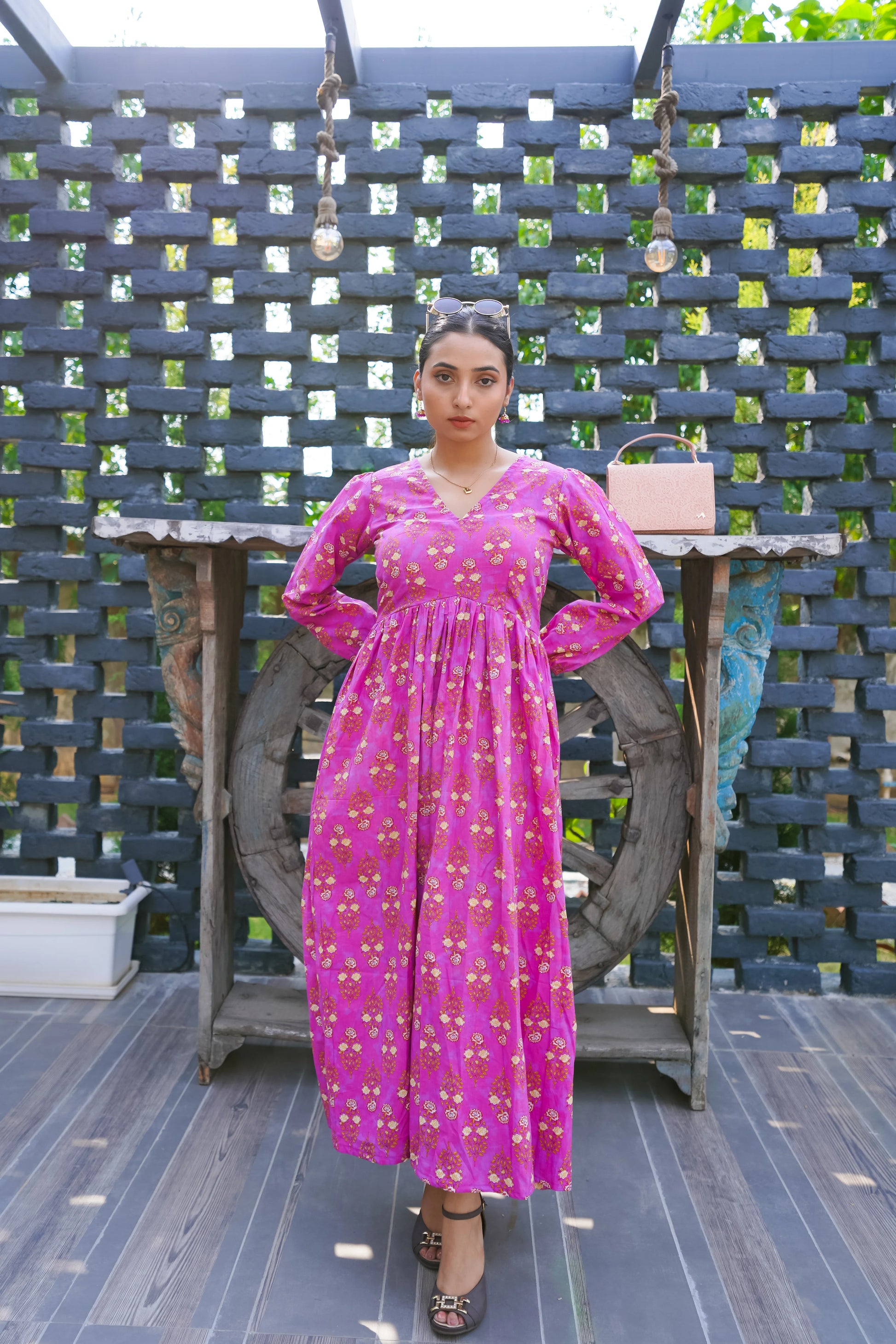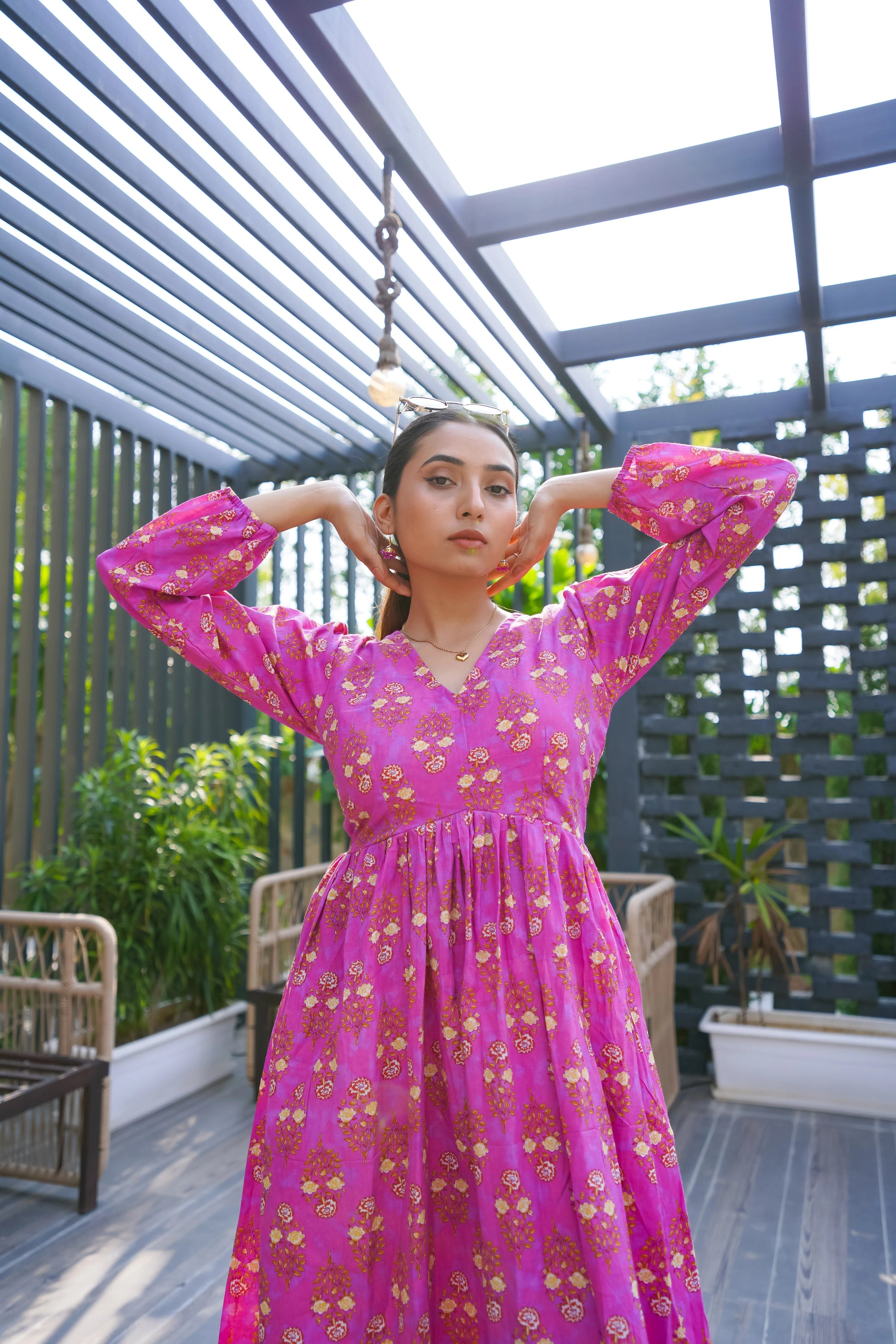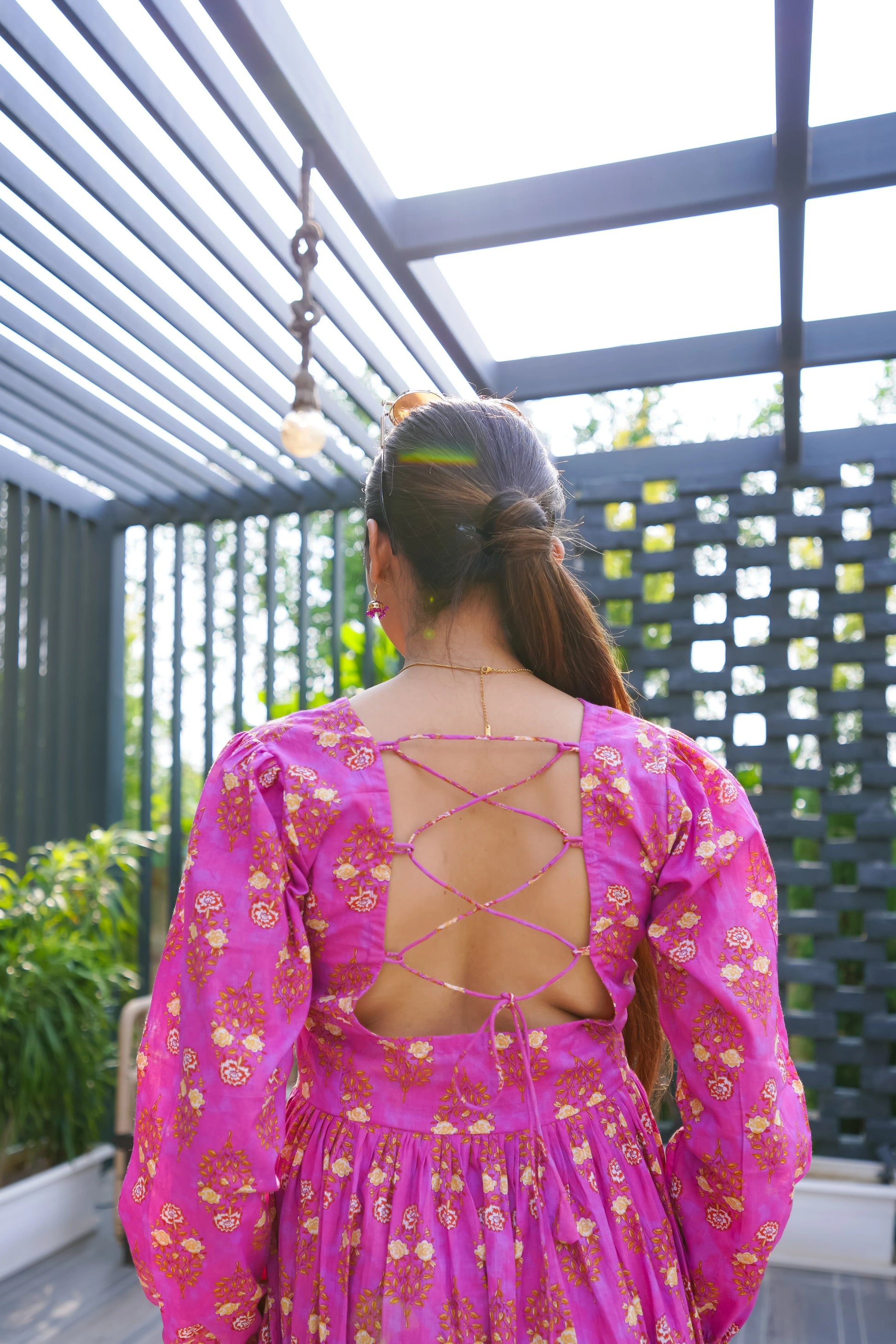Step into twilight elegance with Raatrani Rouge — a stunning blend of tradition and bold femininity. Made from premium 60x60 cotton, this flared dress is soft, breathable, and made to move with grace. It features a square neckline in the front and a lace-up open back for that effortless, show-stopping charm.