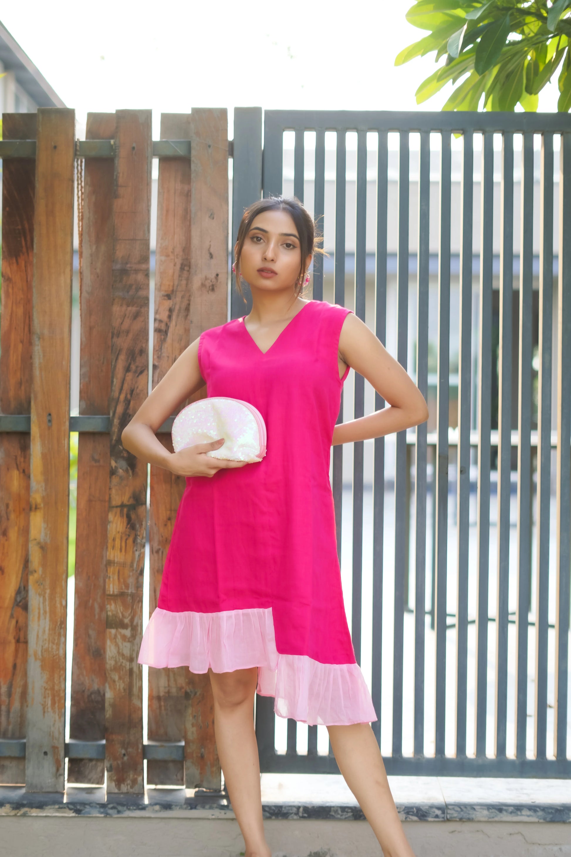 Ruhaani – Hot Pink Mulmul Ruffle Dress