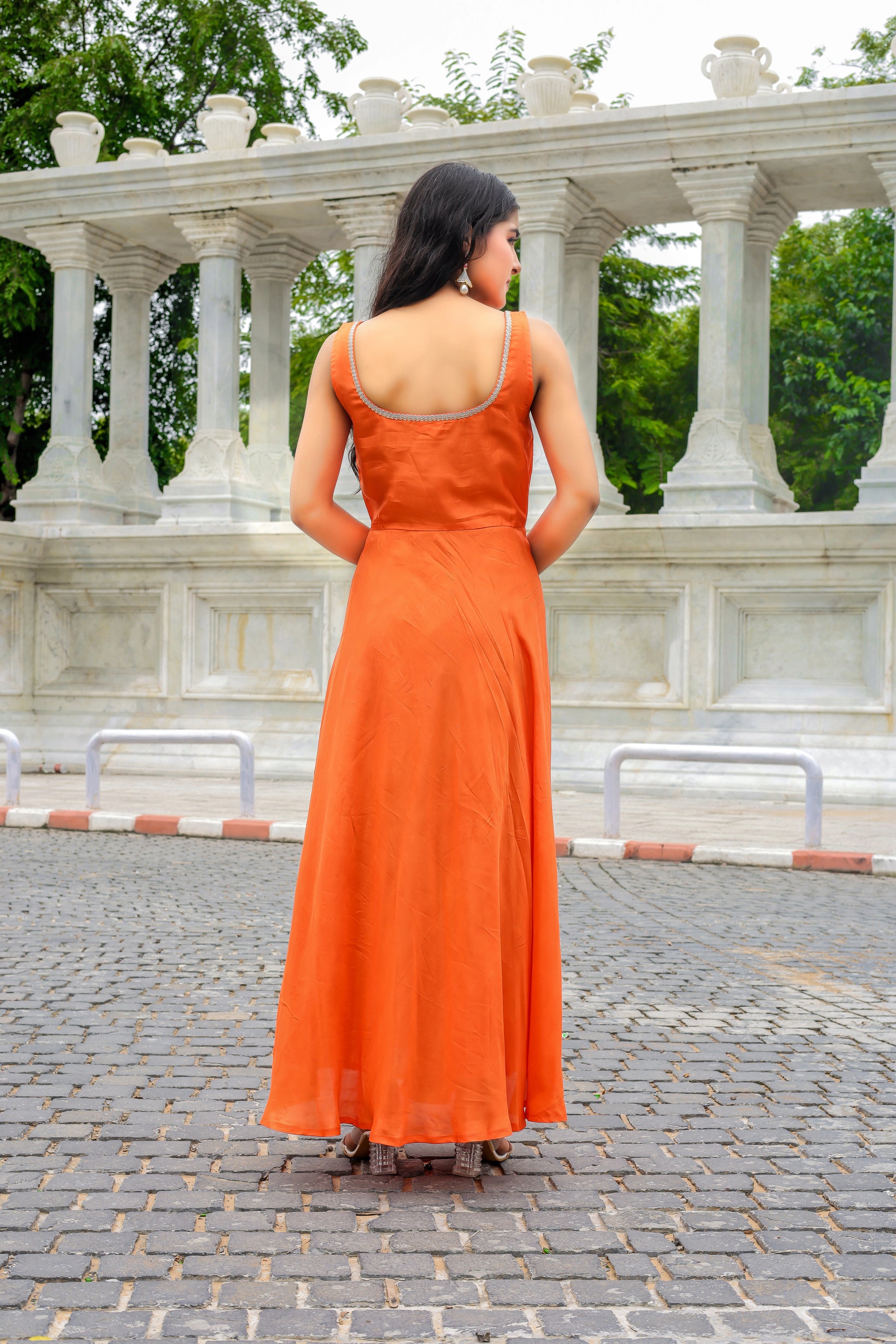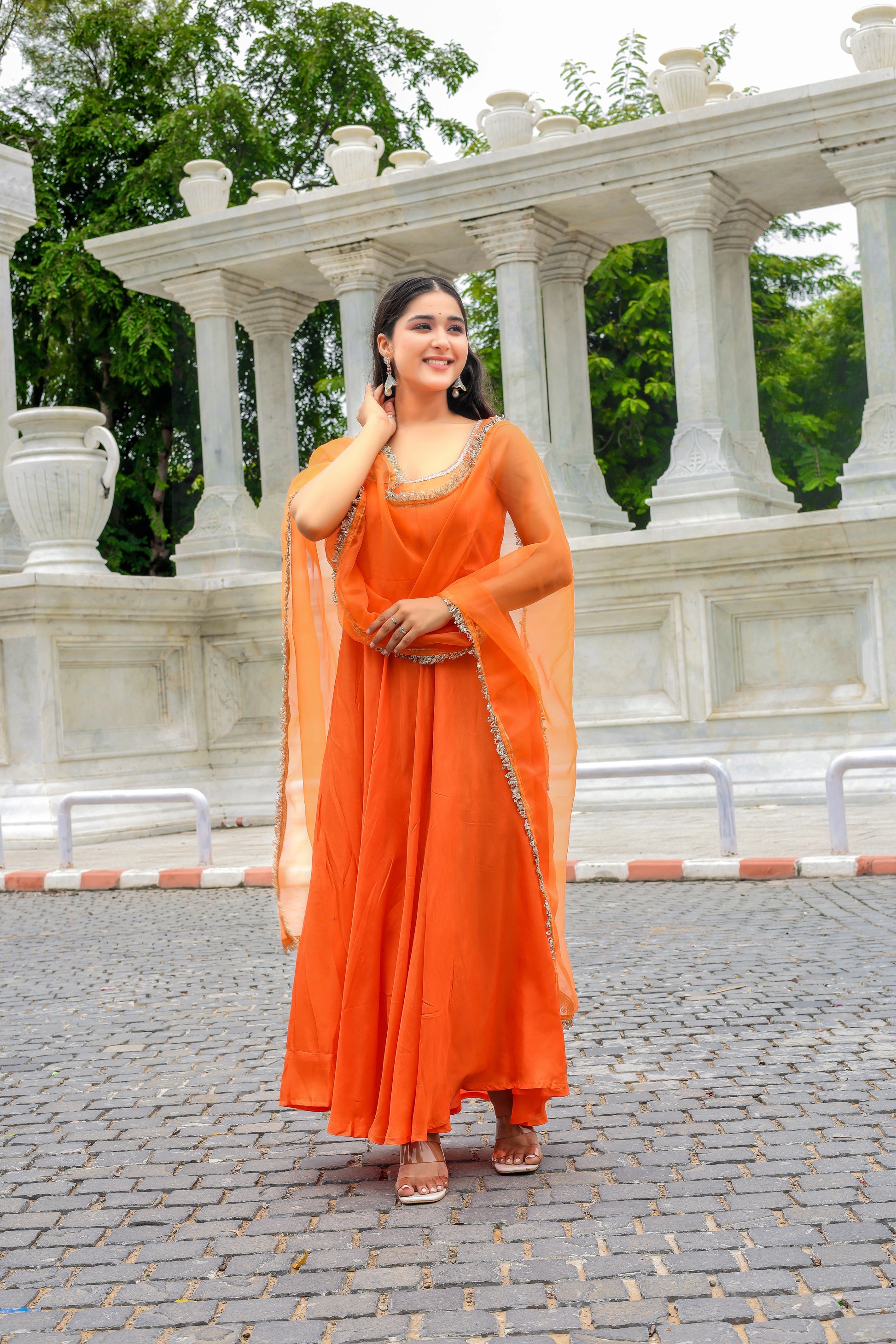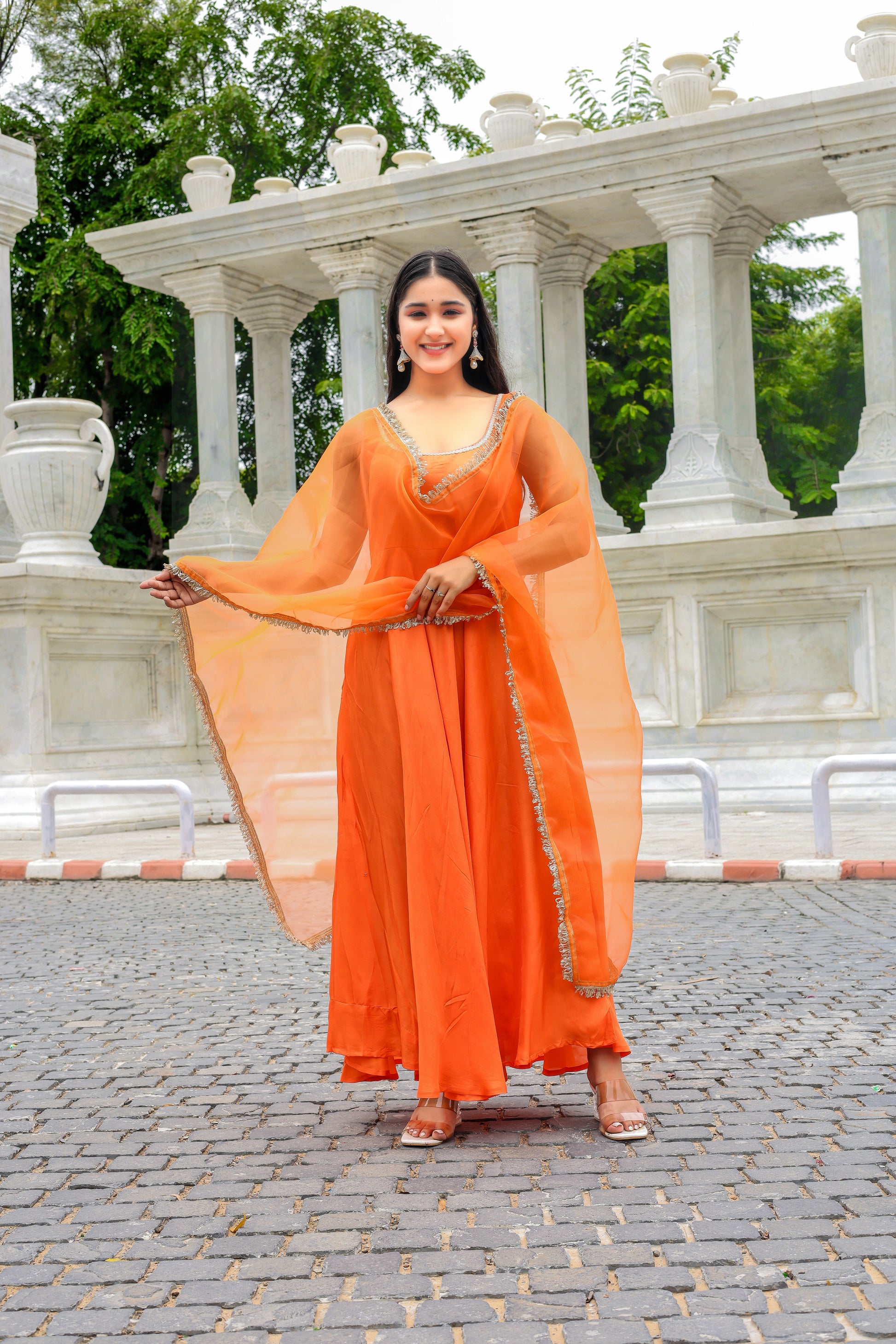 Product Name: Tangerine Glow Anarkali – Modal Silk Set